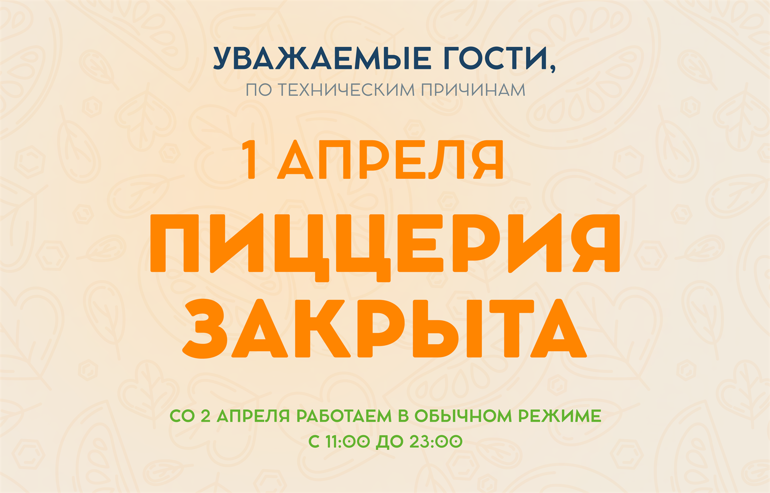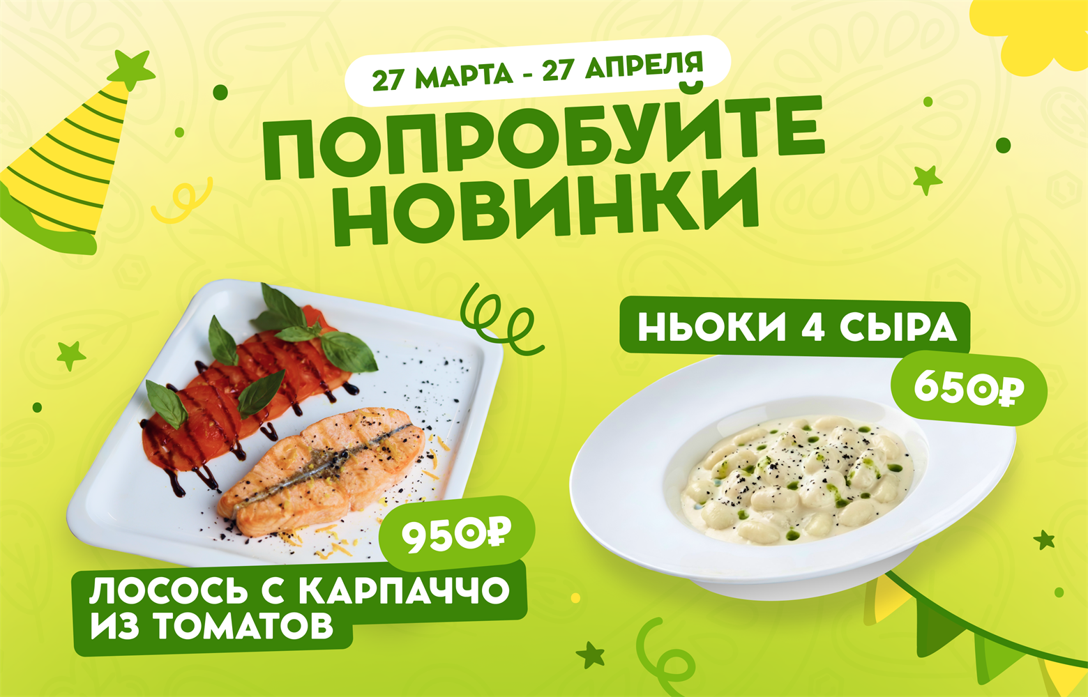 Пицца, спагетти, супы, овощи гриль, салаты, десерты, напитки — разве может быть день лучше без нашей компании? Безусловно, нет.